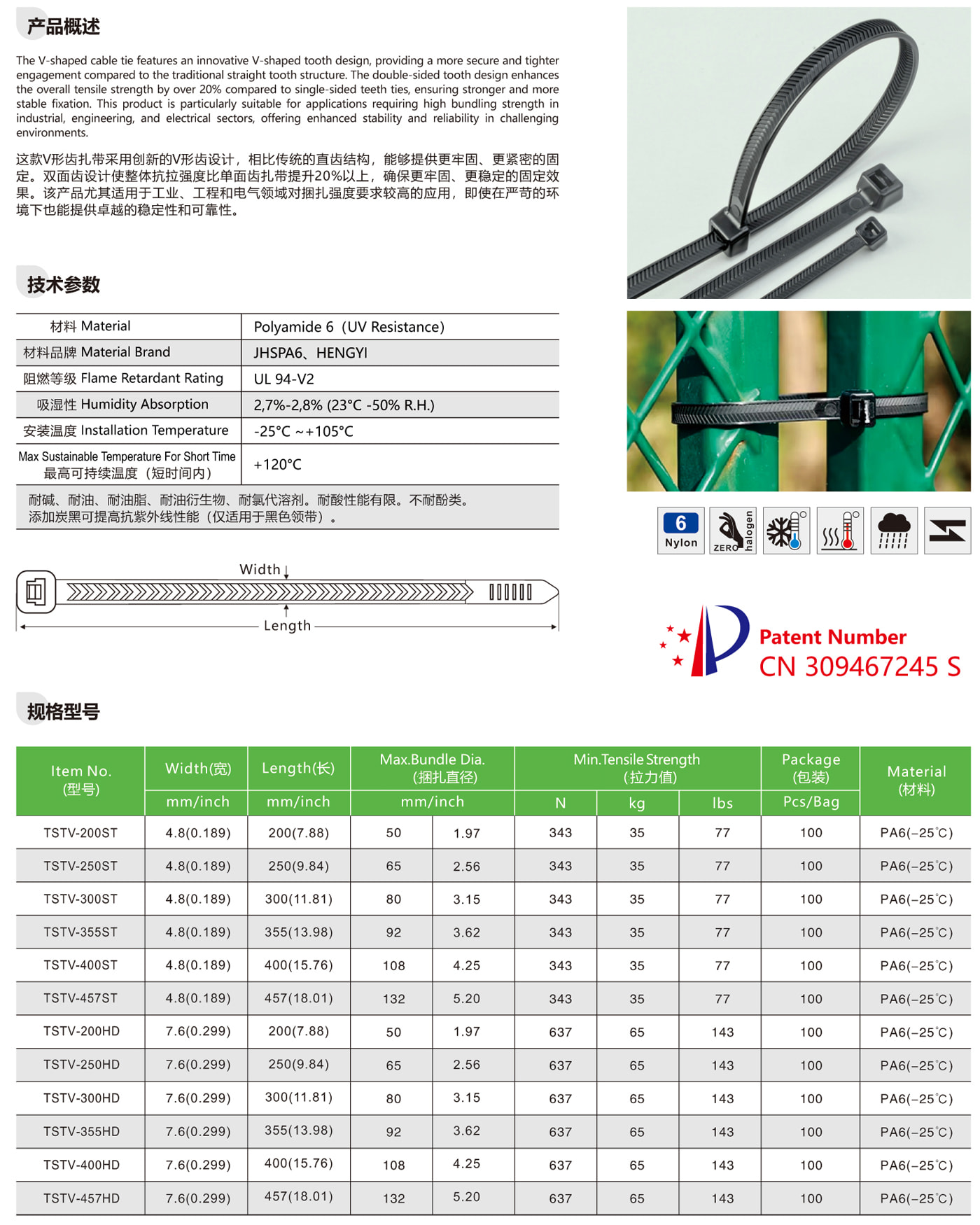 高性能尼龙扎带V型电缆扎带(双面齿)