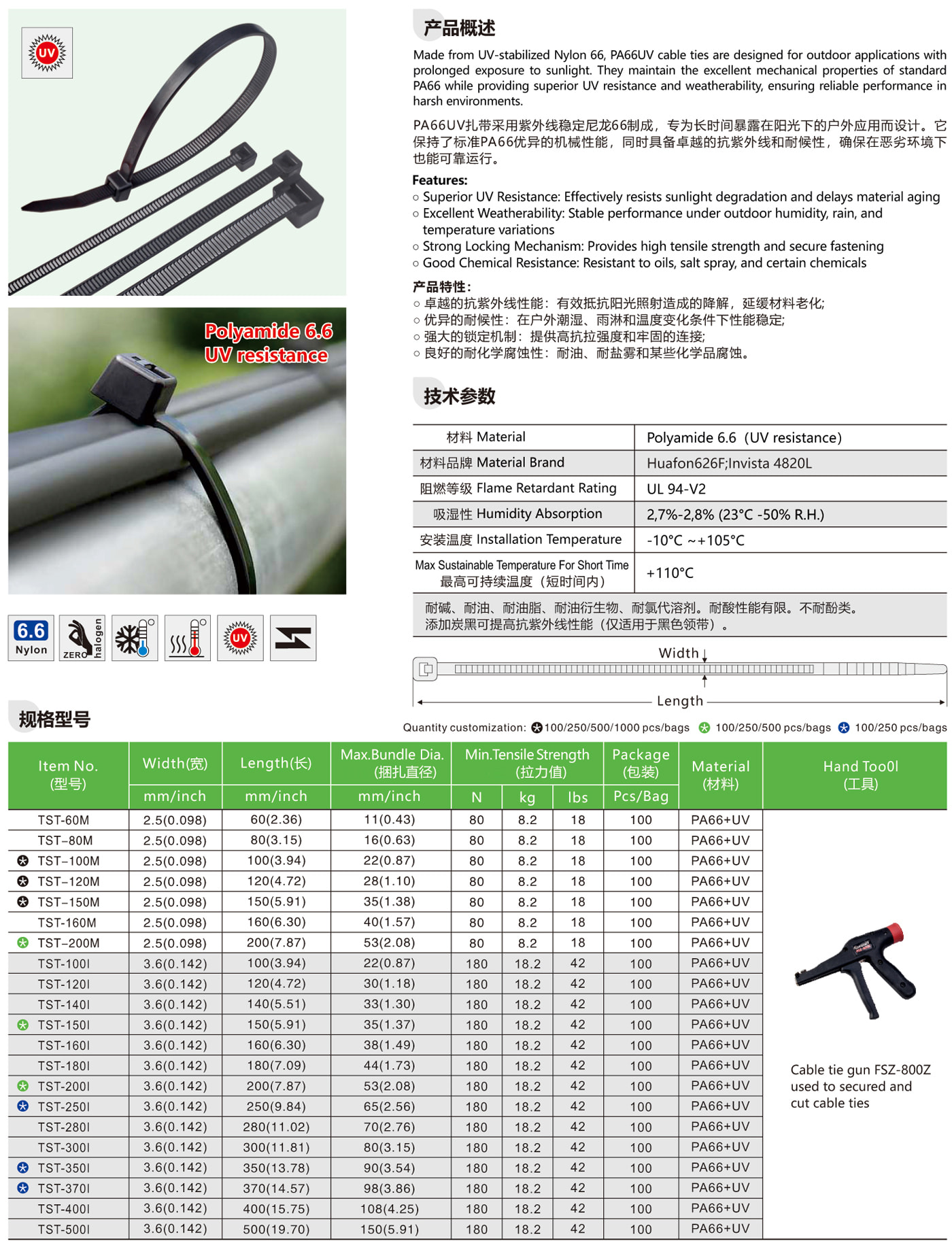 光伏扎带抗UV尼龙扎带